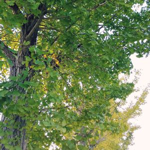 銀杏並木をお散歩🐾 まだ緑のいちょうを見上げてみました✨ その先のいちょうは黄緑から黄色になっています🎃 いちょうさん、色づき具合が楽しい感じ🎶