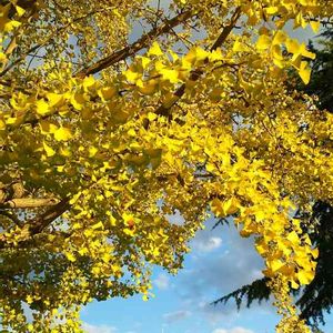 イチョウの木と秋の空です。 イチョウの葉っぱがホンノリ黄色がかってきましたよ。 朝に比べると雲が多く出てきました。 午後から比較的強い雨が降りそうです。 皆様、くれぐれも気を付けてお過ごしくださいね🍁