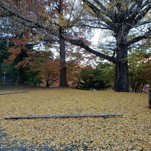 銀杏並木 葉っぱが散り始めてました 銀杏と葉っぱがいっぱいでした 今日は三島の街と楽寿園を散策しました 日本大学や小中高校が立ち並ぶ通りです