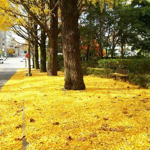今朝は曇り空 今日は☁️→☀️の予報です 昨日の銀杏並木 歩道橋からのpicです 二車線道路が銀杏の落ち葉で💛黄色いジュータンを敷き詰めたようになります 樹齢は半世紀以上ですので 大きな樹で大人三人が手を回した位の太さです 毎年この時期ニュースに登場します