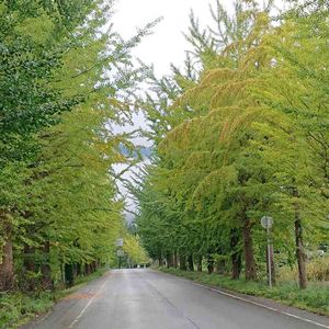 銀杏並木🌳 小雨のドライブにて🚘️ あと1~2週間したら色づいて、秋の小路が目に浮かびます😌