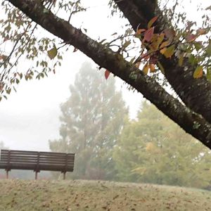 隣の公園に お散歩に 来ています🍁 少し 霧が出ています✨✨✨