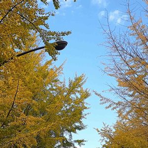 ここにも秋が! 日大通り 三島市の日本大学の通りは 銀杏並木になっています ようやく黄色に染まってきました