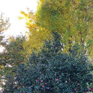 今日の空と庭の銀杏の木とどうだんツツジです。 3色が綺麗だったので。🤗