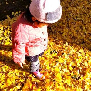 黄金色の絨毯✨ サクサク!!を楽しんでいるみたい💛 心が和みます😊