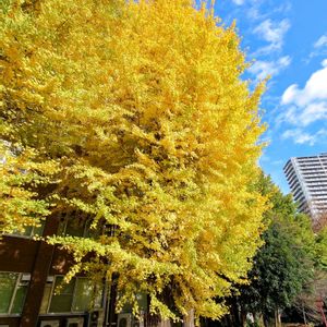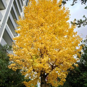 先日、旅行先の観光地で見かけたイチョウが綺麗に黄葉していました。