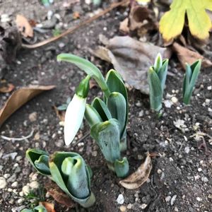 白い蕾が スノードロップ 母の庭 今年初投稿の花です ことしもお付き合いおねがいします🙇♀️