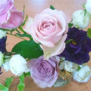 水彩絵の具を滲ましたかのような薔薇。 名前知らないけど、こういうのは切り花ならではですよねー。 挿し木うまくいきますように。