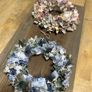 おはようございます😃なんだか寒いくらいです 昨日はクリスマスバージョンの布リース作りました! 北海道からココア色のカシワバアジサイのドライが届きました🤎🤎