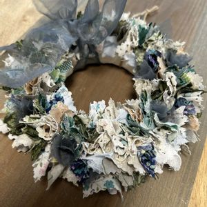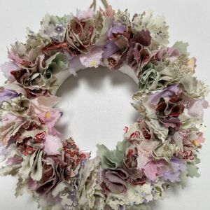 おはようございます😃 ハシギレが沢山たまっていたので毎日チョキチョキ😁して布リースを作ってみました…まだドライフラワーが沢山出来ていないのでドライのリースの間はこれで楽しもう😁👍💗💗