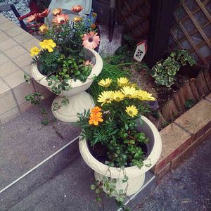玄関先 花のチョイスは長女で、ビタミンカラーで気持ちを明るくしてくれます( ̄ー ̄)