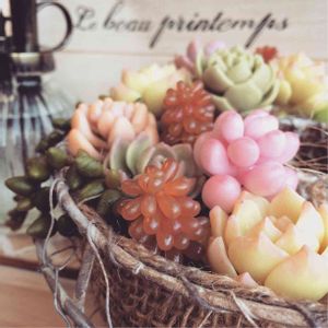 フェイク多肉あつめたら かごリースにピッタリ💓 だんだん色みがハデに なってる気がします💦 色付け難しいです〜
