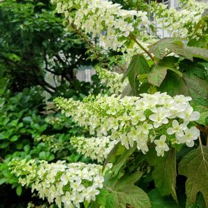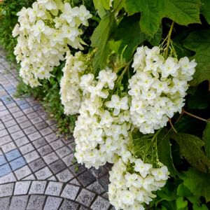 今日の午後、帰宅途中に見かけたカシワバアジサイ。