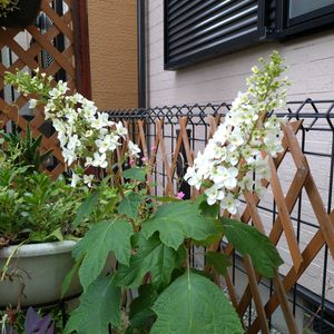 一昨年もらったカシワバアジサイを挿し木したら、今年は立派に咲いてくれました。