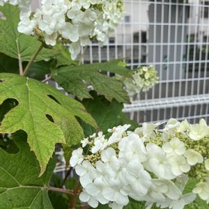 今朝、通勤途中に見かけたカシワバアジサイ。