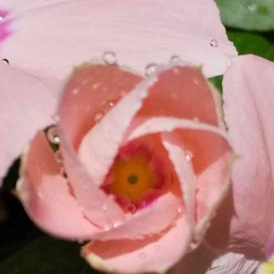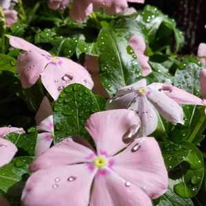 昨夜からの雨で雨粒がまるでラメを散らしたように見えます🎵 🌿ニチニチソウ🌿