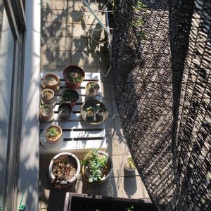 昨日からの強風でサボテン、小さい子達が転倒、急遽夜中に植え替えて室内に避難しました。今日は一日家にいれたので、朝から夕方まで、約1時間ごとにベランダの日当たりを写真に収めました。うちのベランダは形がイレギュラーなので、日が当たる場所、日陰になる時間、スペースなど、だいたい把握しました。夏休みの自由研究ばりです。仕事が休みの今しかできない大事な観察!今日は風が強すぎて寒冷紗を外していましたが、置き場所さえ間違えなければ、はずしても育つ、と踏んだ。温室で育てられた完璧な多肉を目指したい気持ちもあったけど、我が家の環境にあわせて、多肉さんたちも適応するし、気楽にやろう。 今夜は涼しい!久しぶりにエアコンなしで寝れそう。