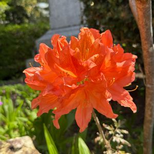 兵主神社付近で見かけた鮮やかなオレンジ色のレンゲツツジと爽やかな色合いのツルニチニチソウ🧡 ツルニチニチソウの蕾から何か発射しそうな勢いを感じました🤭