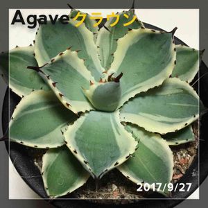アガベ・吉祥冠錦 先日サボ好きな方からいただきました。 (頂き物率高いw(笑)) この種類は選抜されて クラウン→スーパークラウンに格上げされるみたいですね。 斑の入り方なのかその条件が分からないのですが、 この株も綺麗な物と思うのですが…もしかしたら一級品の可能性も?!なーんて期待しちゃいます((o(´∀`)o)) 詳しい方がいましたら教えていただけたり判定いただけたら嬉しいです😌