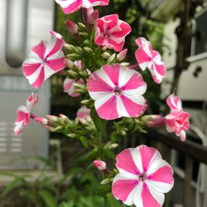 フロックス・ペパーミントツイストです。宿根フロックスは花の少ない季節に咲いてくれますネ。 露地植えだと、どうも上手く育たないので鉢植えにしてます。