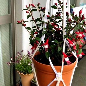 お家にあった紐を使って、自作でマクラメハンギングを編みました♪ 風通しが良くなり気持ち良さそう〜