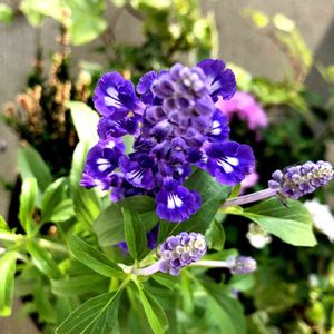 おはようございます♪ プランター野菜たちの観察を終えてコーヒTime☕️ パンジーから代替わりしたブルーサルビア、上から見ると表情も違って見える(^ ^)