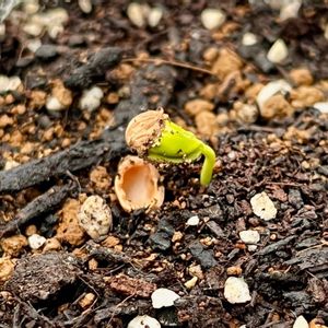 ヤマボウシ君、発芽‼️(*゚∀゚*) 去年、一昨年と発芽はするけど、ダメになってしまうの繰り返し( ;∀;)、 何故かヤマボウシだけは育たないんですよ。 今年こそはのリベンジです🌱