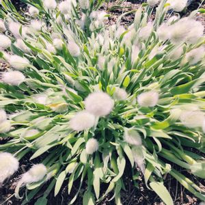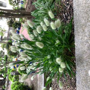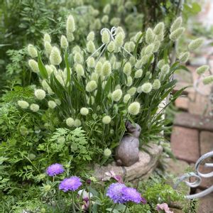 ラグラス🐰バニーテール バックヤードのお遊び花壇で もふもふさんが発生中 日当たりが悪いからか密植させてしまったからか 表の花壇にいた時より背も低く、 もふもふも気持ち小さい 触感の気持ち良さは健在です( ⁎ᵕᴗᵕ⁎ )