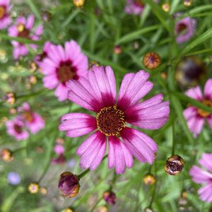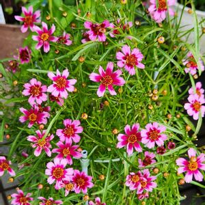 こんばんは😊 コレオプシスガーネット 咲き始めました🥰 花色が美しくキラキラ🩷✨ 沢山蕾を付けてくれています♪