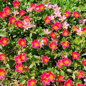 相変わらず元気に咲いているお花たち ①絞り咲きポーチュラカ ②コレオプシス ガーネット ③ペンタス