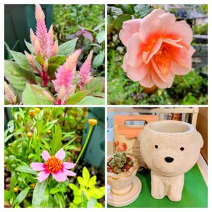 こんにちは😊 今日も1日雨でした☔ ①ちょっと園芸店に行くのが遅くてトウガラシ系は無くて… ケイトウ スマートルック 実物は、先端がアプリコットなんです🥰 コレオプシスシス ガーネット(100円) をお迎えしました🤗 ついでに可愛いワンコ🐶の鉢に一目惚れしてお迎えしました。 🌹ディスタントドラムス🧡 ②ワンコの鉢にドライのアナベルを飾ってみました🤭 ③今日買ったお花です🌸 リーフはプリムローズ ジャスミンでした☘️