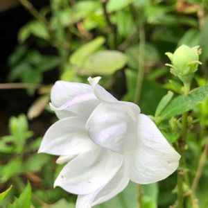 八重のキキョウ、ひっそり咲いてくれています。地植えの球根から春に元気に芽を出してくれていたのですが、いつのまにかナメクジやらに食べられていて、ヒョロヒョロとなんとか咲きました💦💦 頑張ってほしい〜‼️