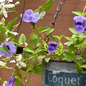 今わが家で咲いている💜💜💜💜💜のお花です💕💕💕 クレマチス籠口 ニオイバンマツリ サマーミストバイオレット 柳葉ルイラ草