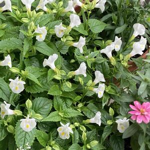 トレニア 毎年、自家採種からの植え付けやこぼれ種からの拾い上げで育てていたが、早くて7月からの開花となるため、今シーズンは苗も購入、植え付け(^^) ピンクは挿し芽用に10本ほどピンチしメネデールに漬けポットに植えました!