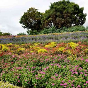 **♪ペンタス&ジニア&ブルーサルビアのお花畑♪** お出かけ先からのpicです🤗 空気が澄んでいて、風は少し寒いくらいです✨ 広々としていて、元気をもらいました (。•ᴗ•。)♡ᵗᑋᵃᐢᵏ ᵞᵒᵘ* ʕ๑•ɷ•๑ʔ❀キレイダネ~❣️