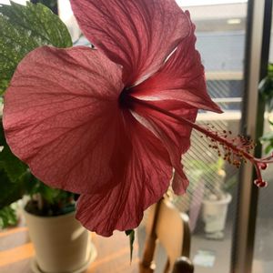 おはようございます☺️今朝また開花しました🌺 今日は2種類のサマーブリーズ🌺が開花してるのでまた後で2つ同時に咲いてる姿を貼りに来るね❤️ こっちは赤みが強い方なんだけど日差しを浴びるとスケルトンで可愛い☺️ 昨日咲いた子は最後の5枚目に貼ったけど萎む前に取って冷凍保存したよ❤️ それじゃあみんなお仕事頑張ってね☺️ ゆうちゃんはお休みなのでみんなの投稿見て癒されるね❤️