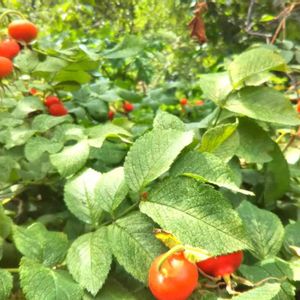 ハマナス(浜茄子)の花と果実。 皇后雅子さまのお印の花です🌸。 挿し木して、30年近くなります。🌱🌱 果実は、ホワイトリカーに、漬け込んだりしてます。 ビタミンCが豊富です。😊