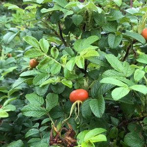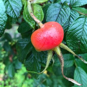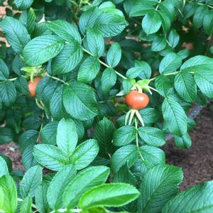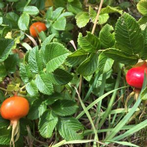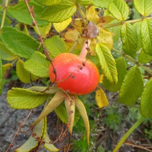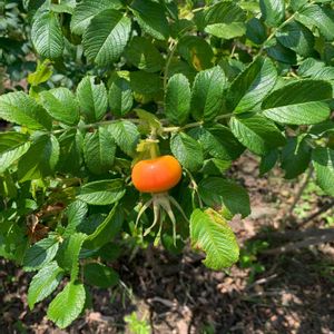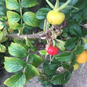 商業施設駐車場の植え込みに赤くなった🌸ハマナスの実を見つけました。ゴルフボールより一回り小さく、人目に付きやすいです。 このハマナスは何色かはわかりません。来春確認しにまた訪れたいです😁
