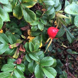 朝🐶散歩 4⌚40撮影 昔、アイヌの避難はこの実を乾燥して冬の食料】 に化粧の色粉に熊祭りの花道に… 今は、浜茄子酒や、jamにしますね❤