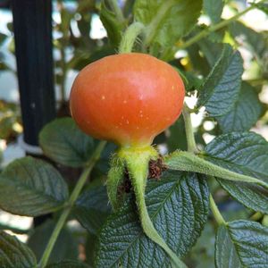 一月ほど前に 公園で花と会っていましたが、先日 友人宅のお隣で 実が成っていました🎵 「ハマナスの実」です😄