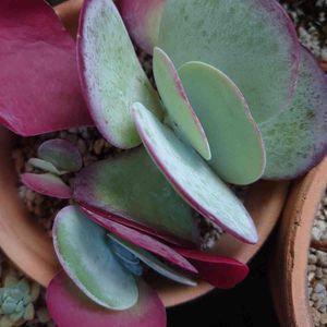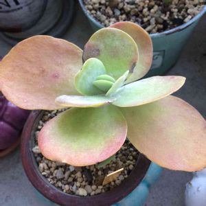 多肉ラボ©︎お題 【夏だからクールな子】byはちまんさん デザートローズを紹介させてください🌹 冬には真っ赤に💕 夏はクールビューティーです。 たまに外葉をカリカリにしてしまうので気をつけてお水やりしています♫