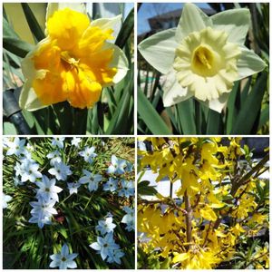 昼前の花壇から💛💛💛連投です、 スイセン、花韮、レンギョウです沢山咲いてくれました🤗