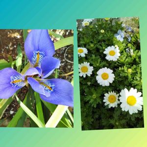 今朝の花壇からアヤメが咲いてました💙、 ノースポールも花を増やしてます👀🤍🤍🤍🤍🤍🤗