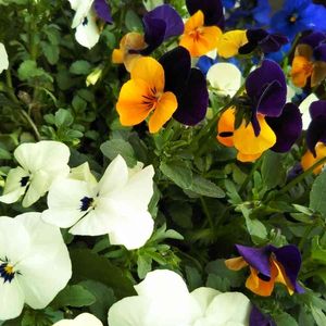 ビオラがのびのびだったので😄仮詰めましたら混盛と咲いてくれたよ💜🧡🤍💞