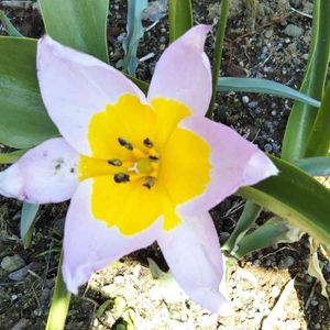 昼前の花壇〜、首の短ーいチュウリップが咲きました💗🤗