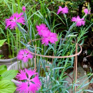 ナデシコ一輪🌼、七鉢ありましたが、出すの遅れ六鉢全滅、唯一残った一鉢を、小分けして七鉢に戻しました。遅れながら全鉢に花芽無事付きました。ナデシコは強い、力強い、👴にも負けない。出すの忘れ責任感じましたが、👴また元気になりました。