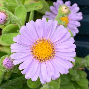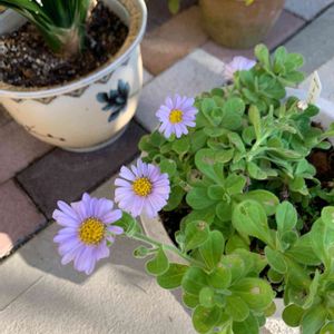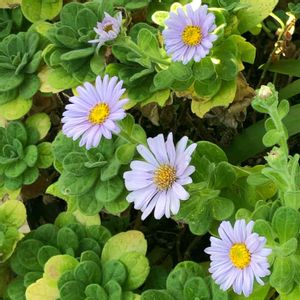 ダルマギク(達磨菊) キク科シオン属の多年草 昨年、盆栽屋で買ったダルマギクの花が咲きました。 買った時は、花が終わっていたので、今回、初めて、花を見ることができました。 草丈は、25㎝くらいで、横に広がっていきます😅 日当たりのよい環境を好むそうで、前へ前へ、せり出して、日光を求めています。 園芸品種と思っていましたが、 ダルマギクは、 西日本の対馬海流に沿った本州西部、九州北部の海岸の岩場などに自生しているそうです。 海岸の植物らしく、葉っぱは肉厚で、毛が密生しています。 触ると、ちょっと、ベタベタします😅 海岸の岩の上に咲く様子が、ダルマが座っているように見えることからつけられた名前と言われています。 葉っぱが丸いことも、ダルマにたとえられているようです。 海岸で、自生のダルマギクを見られたら、とても、うれしいです🙌