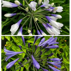 これは、ツートンカラーのアガパンサスです。 どこでもアガパンサスはもう終盤かと思ったら、珍しい花を見つけました🎶 調べたらバイカラー咲きのアガパンサス ツイスターという園芸品種のようです🌼 白と薄青紫色の花で、清々しい感じがします😃
