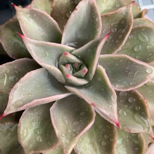 手のひらサイズのサンバースト。 縁取りが蛍光ピンクで癒されます☺️ 葉挿しの子が大きくなっていたのに雨が続いて調子が悪いよー😭 この子を見て元気出そ〜うと💪