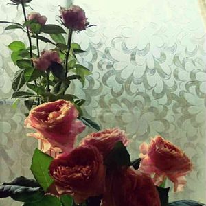春に挿した切り花品種が咲いてしまいました💧 慌ててカット✂️ 本来は重ねの厚い花ですが、今のところは「たそがれ」のようなアッサリ感でした😵
